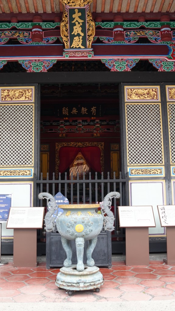 大成殿內部也沒有神像,而是以孔子牌位為中心,搭配兩側歷代儒者神位,體現出對知識傳承與德行尊重的價值觀。每年9月28日教師節當天,廟內會舉辦盛大的「釋奠典禮」,全程遵循古禮,充滿莊嚴與儀式感,是文化與教育的年度大典。