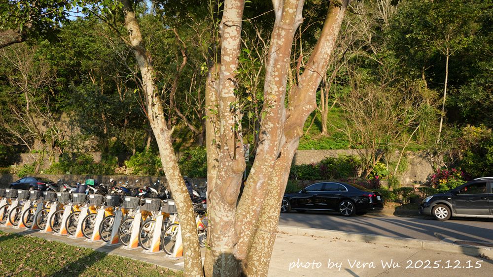 ⬆沒想到接下來我馬上就遇到難題了。人行道旁這一排樹皮略呈深咖啡的樹到底是什麼樹?我卻沒什麼把握。可能因為相片拍得不清楚,下次我應該再去拍更多細節方便自己查詢資料。(待查三)